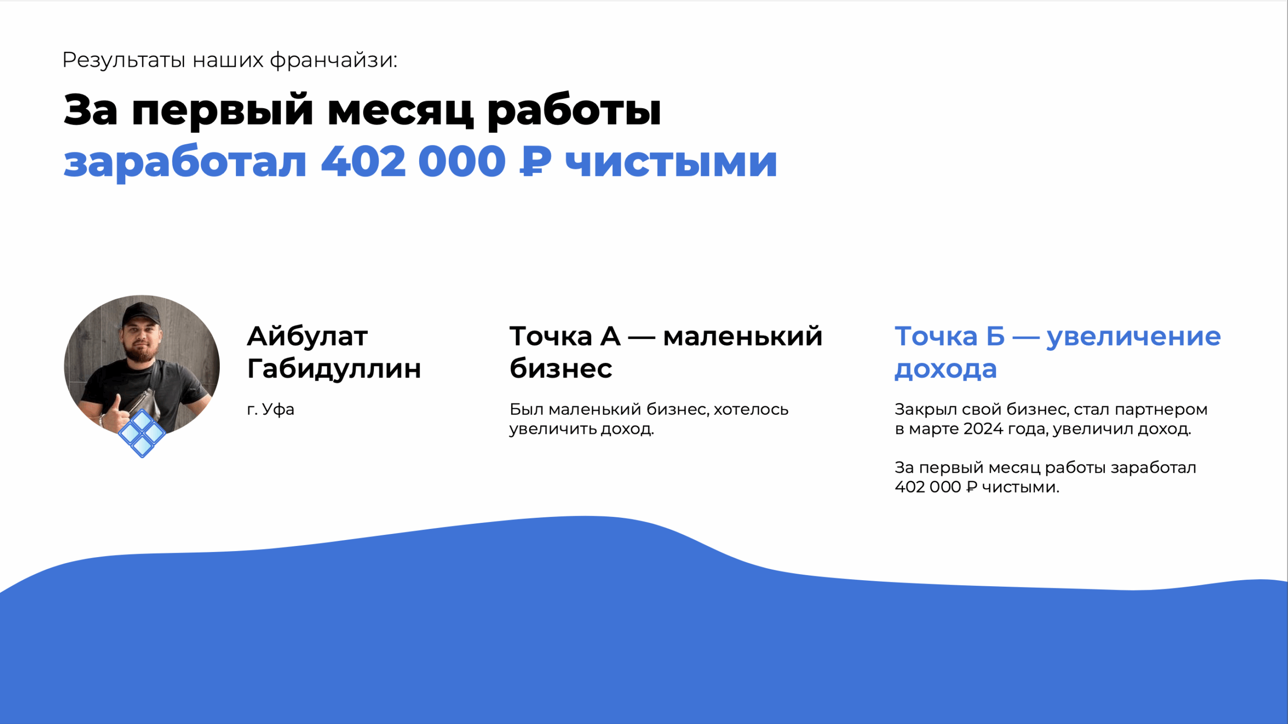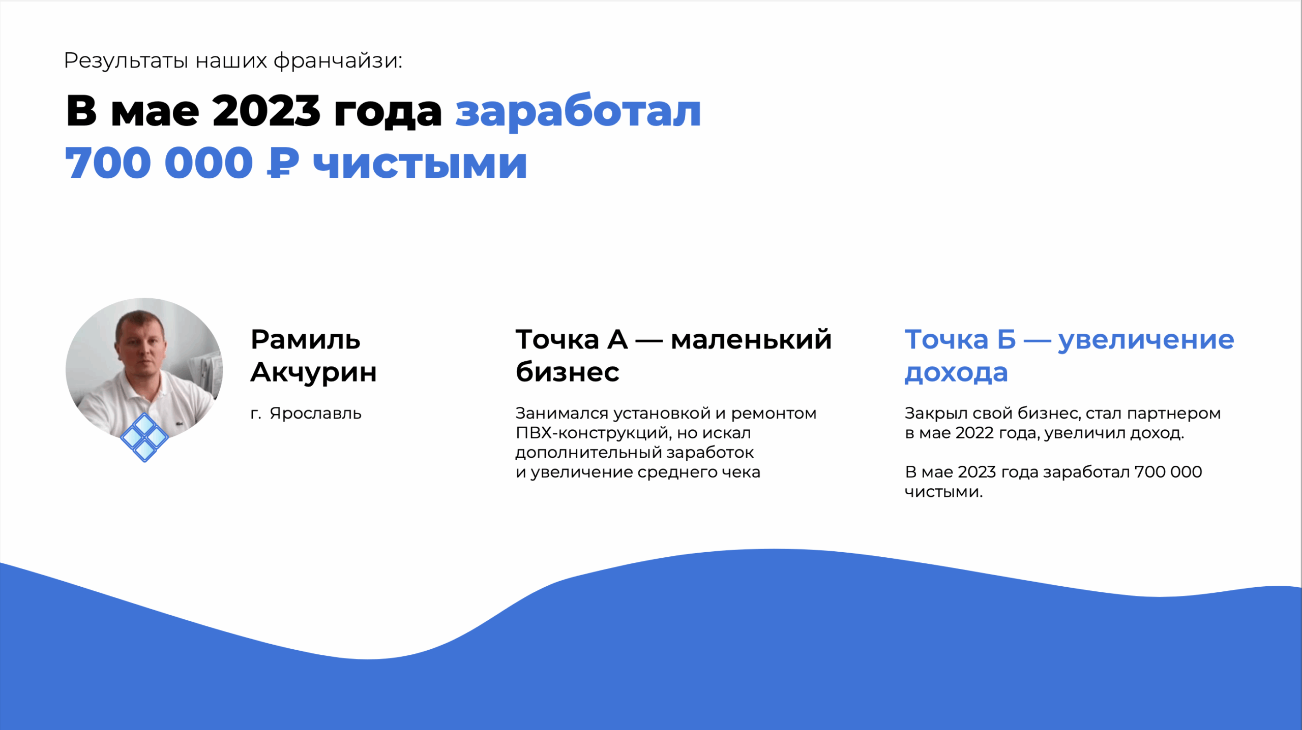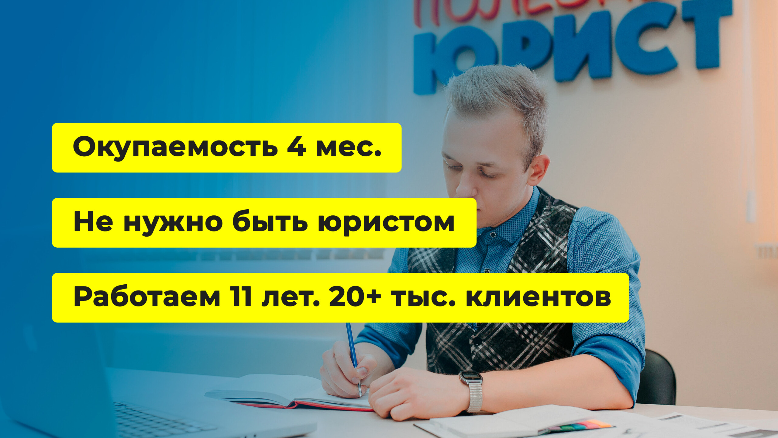 Чистый ЛистСтоимость540 000 ₽Инвестиции150 000 ₽Окупаемость3 мес.Доход700 000 ₽Франшиза юридической компании по списанию долгов с гарантией окупаемости по договору. Компания работает с 2014 года, помогла 20 000 клиентам и развила сеть из 50+ партнёров по всей России (по запросу предоставим контакты партнёров). Наши партнёры зарабатывают до 700 000 рублей в месяц. Вы открываете офис для консультаций, а всю юридическую ответственность берёт на себя головной офис. Опыт и юробразование не требуются. Гарантия снижает риски и обеспечивает безопасный старт. Начните бизнес без увольнения с работы.