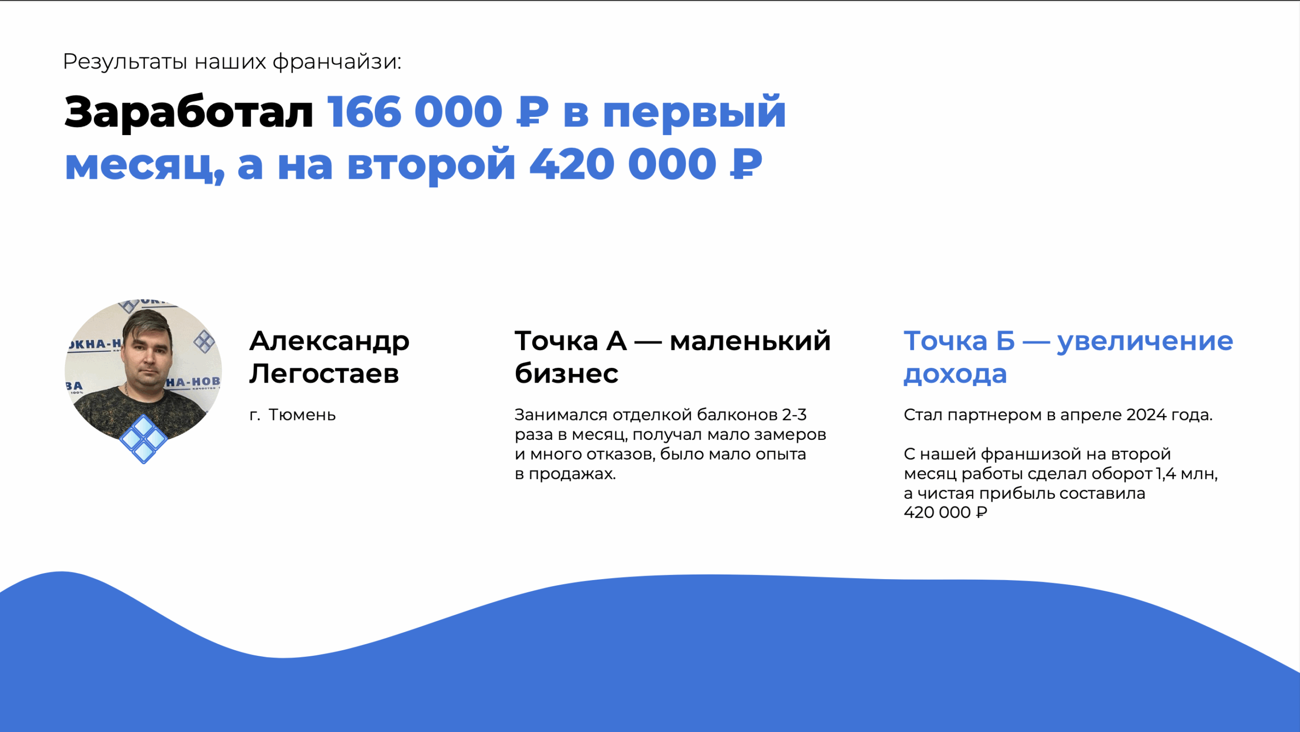 Окна-НоваСтоимость420 000 ₽Инвестиции100 000 ₽Окупаемость3 мес.Доход220 000 ₽Франшиза «Окна-Нова» — БИЗНЕС ДЛЯ НАСТОЯЩИХ МУЖЧИН! Это проверенный бизнес в растущем рынке ремонта жилья - рынок новостроек активно растёт на 30% ежегодно. Вы запускаетесь за 3–4 недели без склада и офиса и выходите на доход от 220 000 рублей в месяц с наценкой до 80%. Модель проверена в 80+ филиалах за 13 лет работы. Привлечение клиентов и маркетинг берём на себя. Оставьте заявку и получите подробную презентацию франшизы.