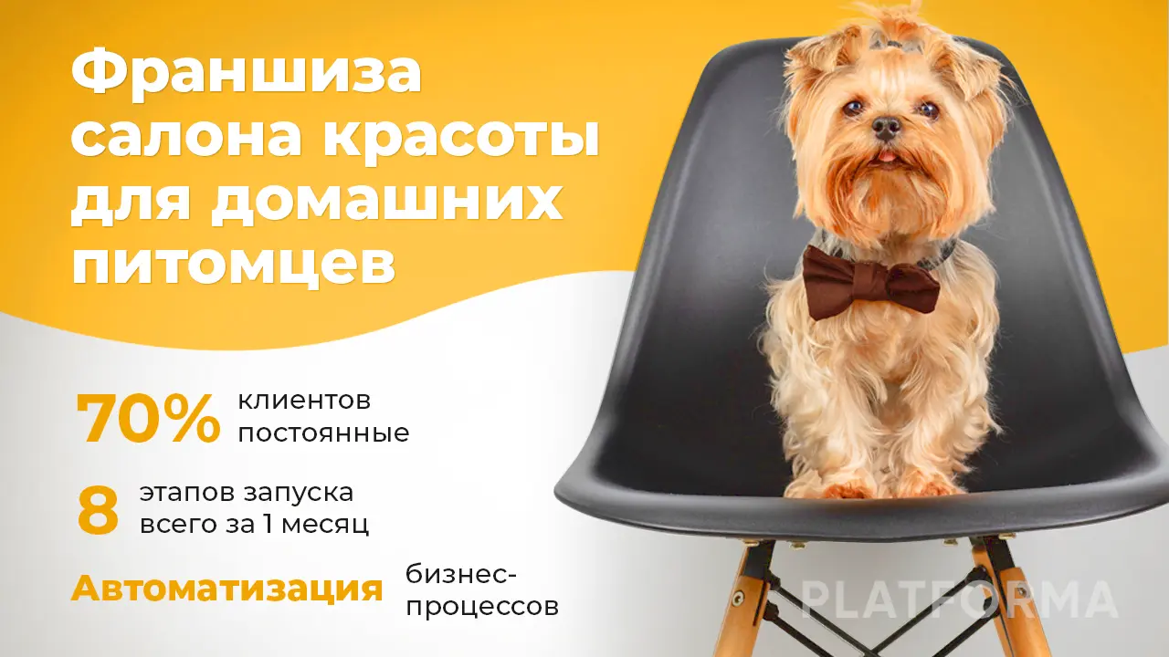 ЦАЦАГРУМСтоимость500 000 ₽Инвестиции700 000 ₽Окупаемость7 мес.Доход320 000 ₽Салон по уходу за домашними животными в настоящее время обслуживает 70% постоянных клиентов, что свидетельствует о высоком уровне доверия наших клиентов. Вы будете зарабатывать от 320 000 рублей ежемесячно, используя нашу чемпионскую репутацию. Рынок услуг по уходу за домашними животными демонстрирует устойчивый рост, а наша ниша с низким уровнем конкуренции предоставляет благоприятные условия для реализации потенциала и достижения высоких результатов.