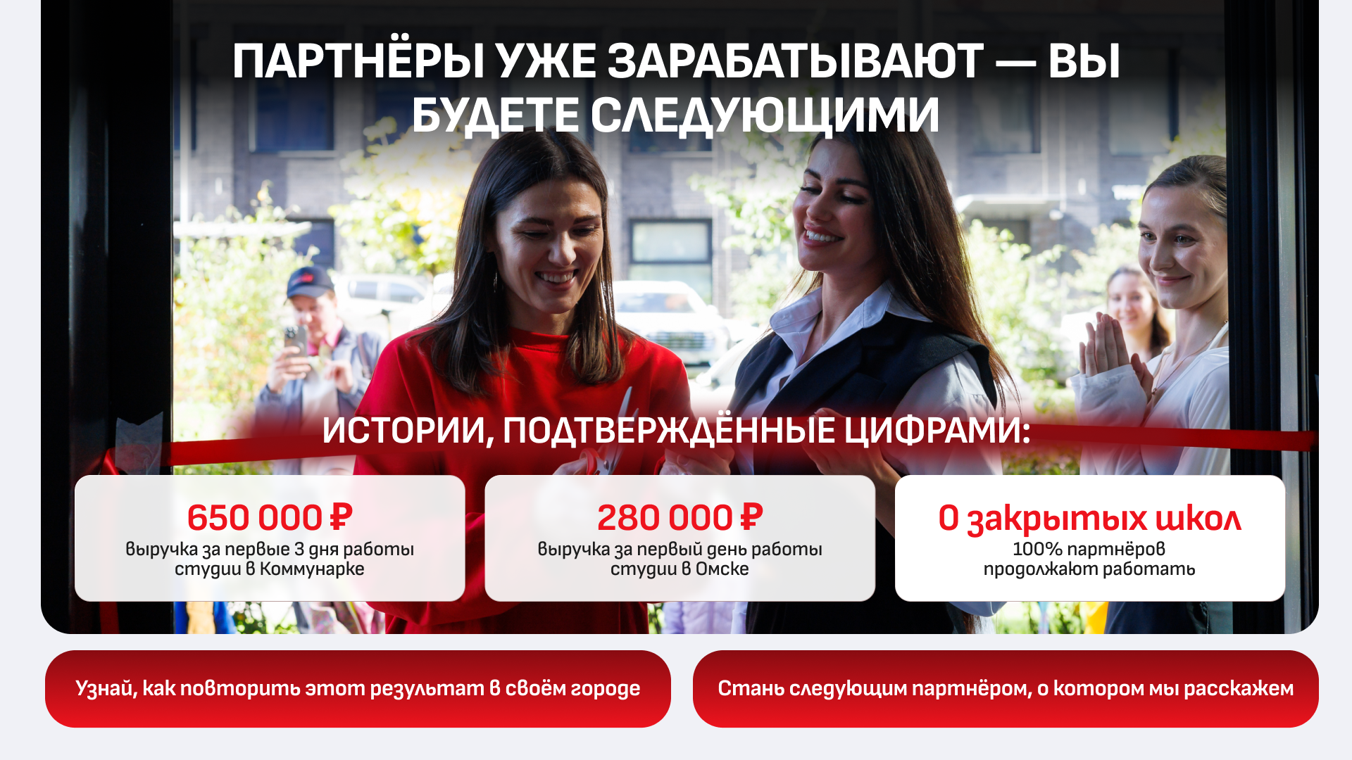 Танцевальная школа СинергияСтоимость400 000 ₽Инвестиции1 300 000 ₽Окупаемость9 мес.Доход340 000 ₽Запусти школу танцев и получай до 500 000₽ чистой прибыли, а 80% операционки мы берем на себя. Партнеры зарабатывают уже с 5-й недели. Мы забираем “под ключ”: поиск персонала, маркетинг и получение лицензии. Гарантируем 100 первых клиентов по договору (>50% из которых станут клиентами с LTV в 9 месяцев). Подбор помещения займет ~2 недели, с вашим включением не более 45 мин в день