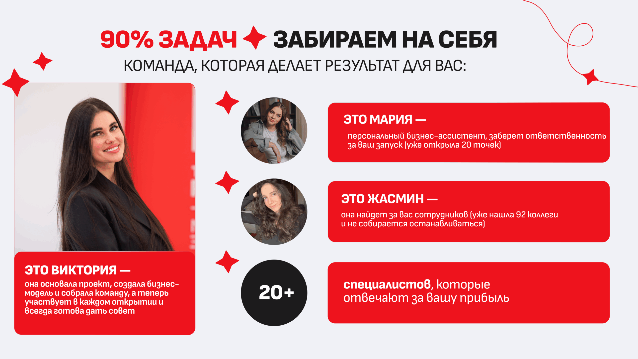 Prostudio ExpertsСтоимость390 000 ₽Инвестиции390 000 ₽Окупаемость3 мес.Доход300 000 ₽Prostudio Experts – агентство интернет-маркетинга с прибылью от 3 600 000 в год и минимальными вложениями. Запустите бизнес за 23 дня и зарабатывайте в любой нише: создавайте и продвигайте сайты, оптимизируйте карточки товаров на маркетплейсах, генерируйте лиды. Мы поможем вам с выбором локации, обучим специалистов, настроим лидогенерацию, обеспечим тендерными заказами и предоставим колл-центр для обработки заявок.