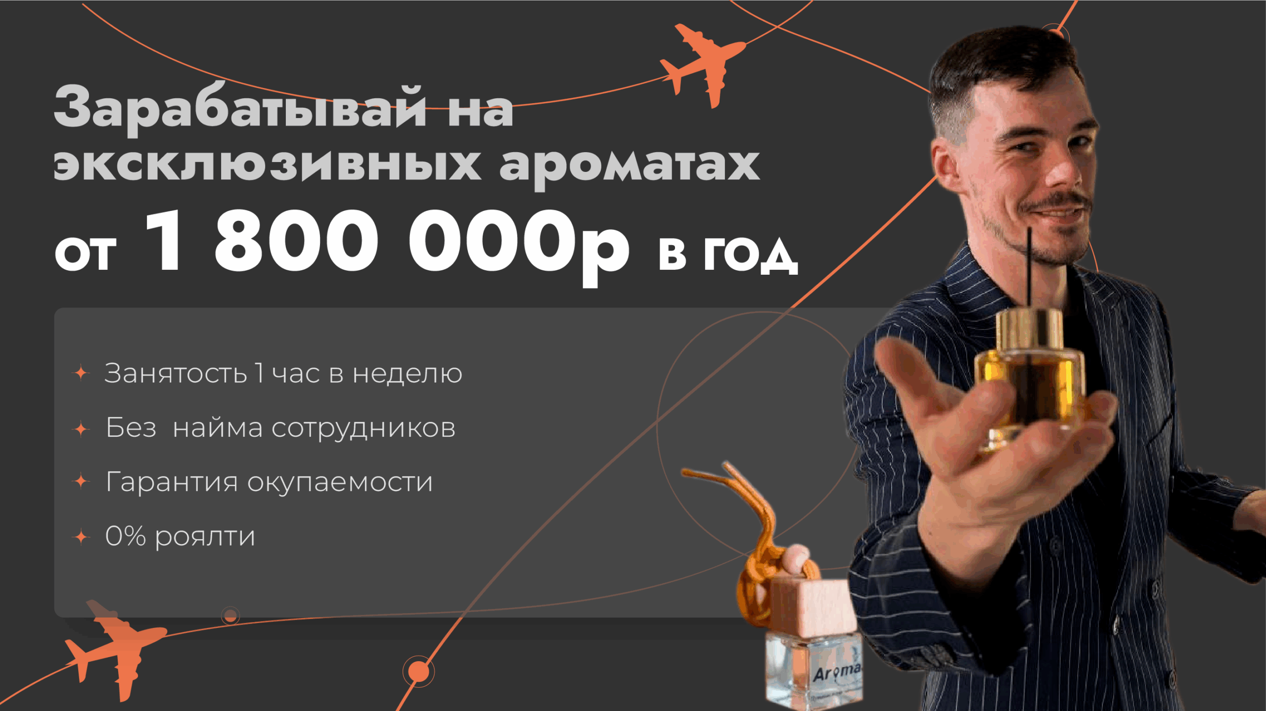 AromaJetСтоимость100 000 ₽Инвестиции429 000 ₽Окупаемость3 мес.Доход80 000 ₽Мы предлагаем вам стать владельцем настоящей аромалавки с премиальными ароматами для дома и авто. Вы будете зарабатывать от 80 000 рублей в месяц, благодаря наценкам от 300 до 500%, используя всего 0,5 м² площади, без найма персонала. Мы помогаем вам с выбором локации и в запуске с гарантированным доходом. Рынок ароматов в России растет на 15% ежегодно. Для новых партнёров Aromajet самая выгодная цена на приобретение франшизы, а ещё полезные подарки. Узнайте, как войти в перспективную нишу!