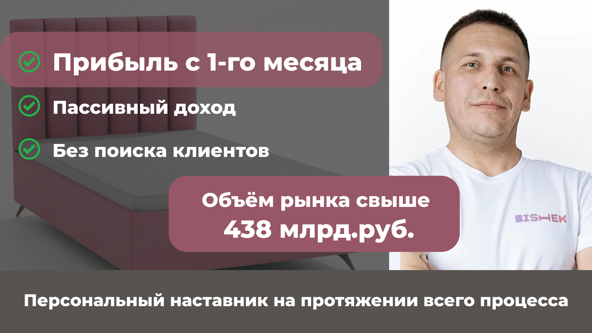 BISHEKСтоимость690 000 ₽Инвестиции300 000 ₽Окупаемость4 мес.Доход780 000 ₽BISHEK — это производитель, который даёт уникальную возможность открыть бизнес с самым популярным продуктом, который требуется в каждый дом. Уход таких брендов, как IKEA, сделал сферу домашней мебели самой быстрорастущей среди всего бизнеса. Работая с нами, вы получите заводские цены и возможность получать гарантированную прибыль на высоком спросе. С поддержкой государства! Так как мы являемся российским производителем! Успей занять свой город и стать эксклюзивным представителем. BISHEK — мебель в каждую семью!