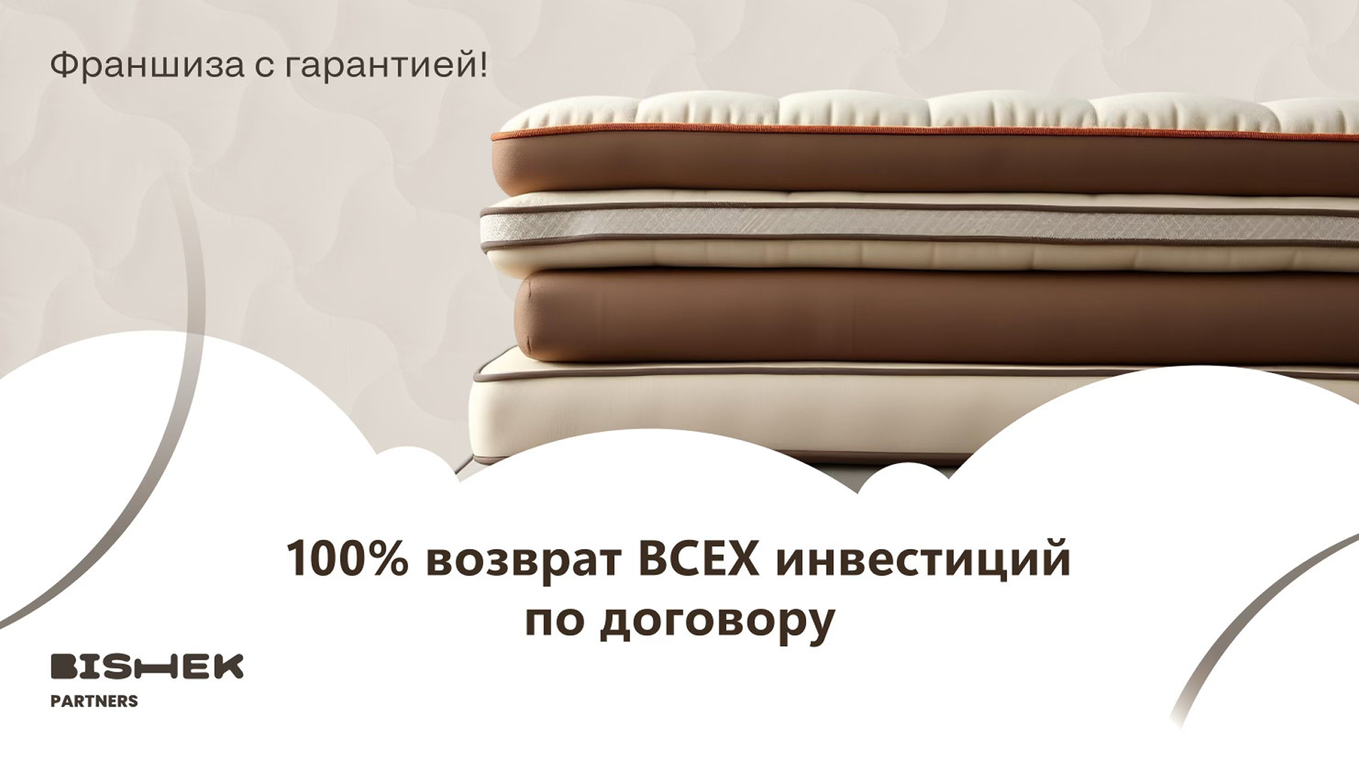 BeBrandСтоимость490 000 ₽Инвестиции150 000 ₽Окупаемость3 мес.Доход700 000 ₽Более 11 лет на рынке. С 2019 года №1 на рынке, согласно официальному рейтингу Роспатента. Гарантия окупаемости франшизы по договору! Более 50 партнёров, многие успешно работают по франшизе по 7-8 лет (по вашему запросу предоставим контакты партнёров). Готовая бизнес-система, вам не придётся изобретать велосипед. Бизнес приносит прибыль, даже если вы активно не участвуете в операционной деятельности. Возможность начать бизнес, не увольняясь с работы и не прекращая текущей деятельности.