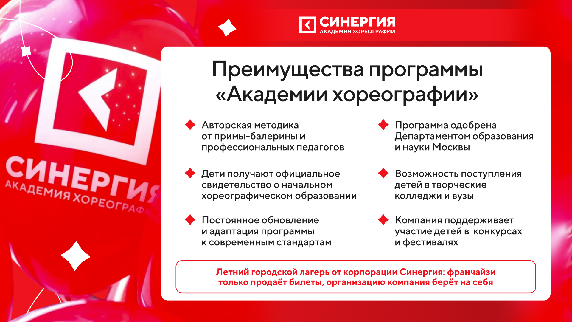 Академия хореографии «Синергия»История успехаЕвгения КладькоМосква1 500 000 рублей за 2 месяца c франшизой Академии хореографии «Синергия»-