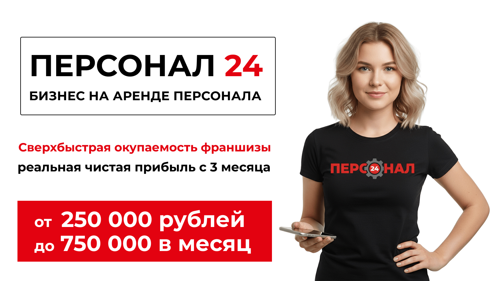 Персонал 24Стоимость250 000 ₽Инвестиции500 000 ₽Окупаемость3 мес.Доход300 000 ₽Бизнес на аренде персонала - тренд 2026 года! Рост ниши на 30% в год! Успейте занять крупный город и зарабатывайте от 250.000р прибыли с третьего месяца. Быстрый запуск за 8 дней и полное сопровождение на всех этапах. Вы будете объединять заказчиков (производства, склады, стройки, ЖКХ, магазины, и тд) с рабочими разных профессий и получать хороший % с каждого заказа. Мы предоставим вам IT-платформу, рекламный бюджет, базу клиентов, скрипты, обучение и поддержку. Ищем сильных партнеров с опытом, готовых много работать и много зарабатывать!