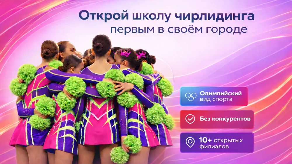 ADL ForwardСтоимость500 000 ₽Инвестиции100 000 ₽Окупаемость9 мес.Доход200 000 ₽Бизнес без конкурентов, с минимальными вложениями до 700 000р и огромным рынком покупателей. Франшиза школы Чирлидинга (олимпийского вида спорта), открой первым в своем городе. Количество франшиз ограничено, успей открыть первым.